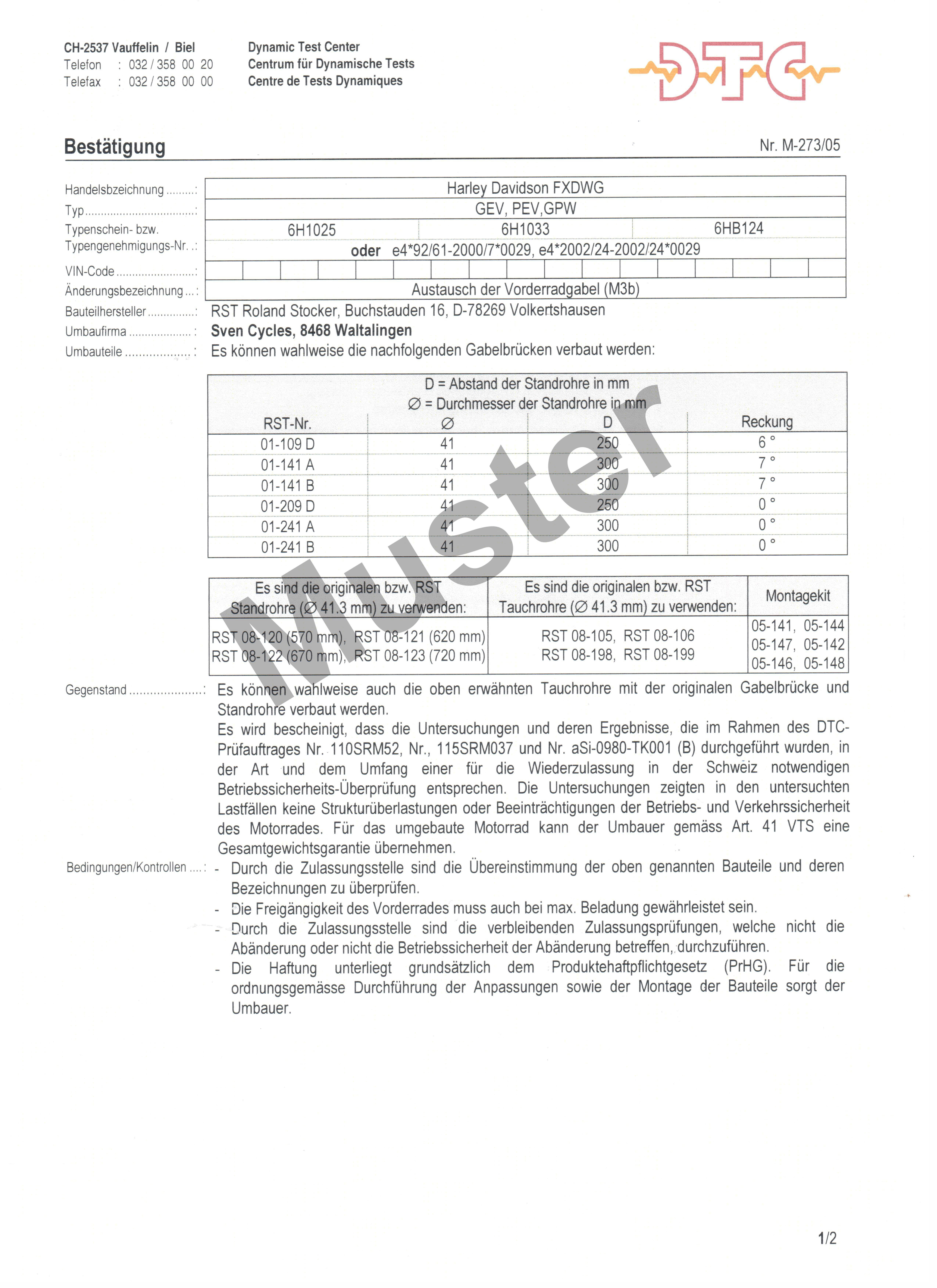 DTC-Bestätigung für RST-Vorderradgabel