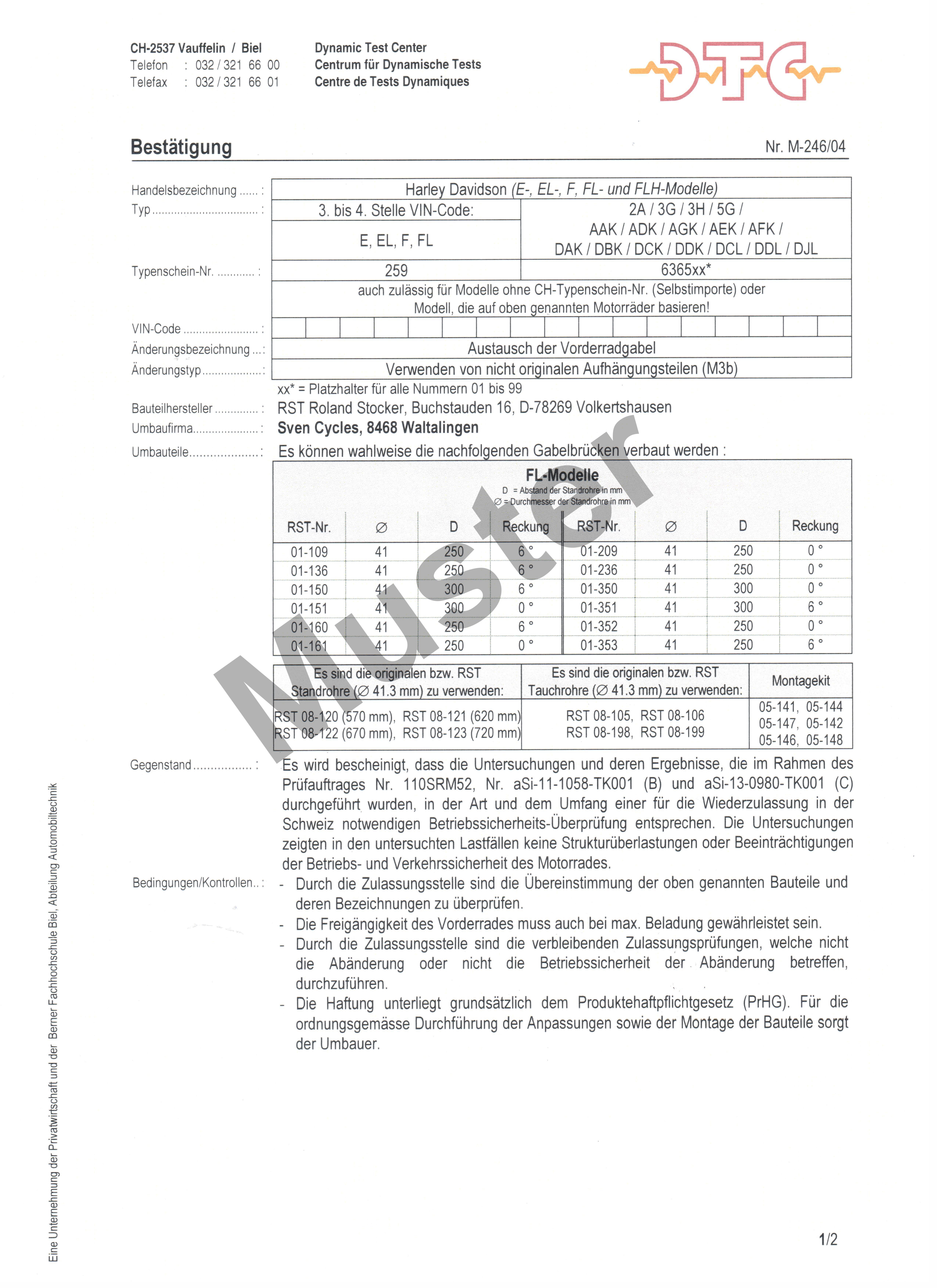 DTC-Bestätigung für RST-Vorderradgabel