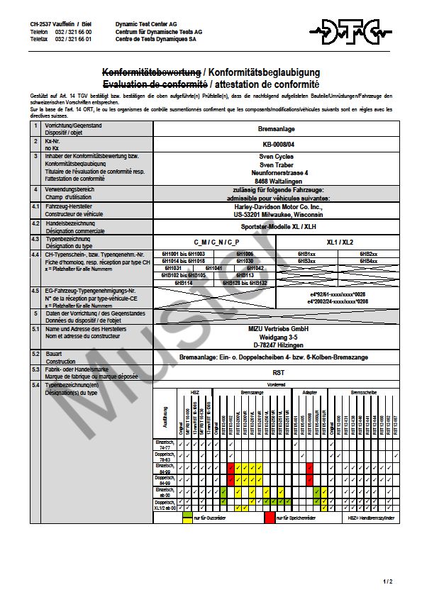 DTC-Konformitätsbeglaubigung für RST Bremsanlage