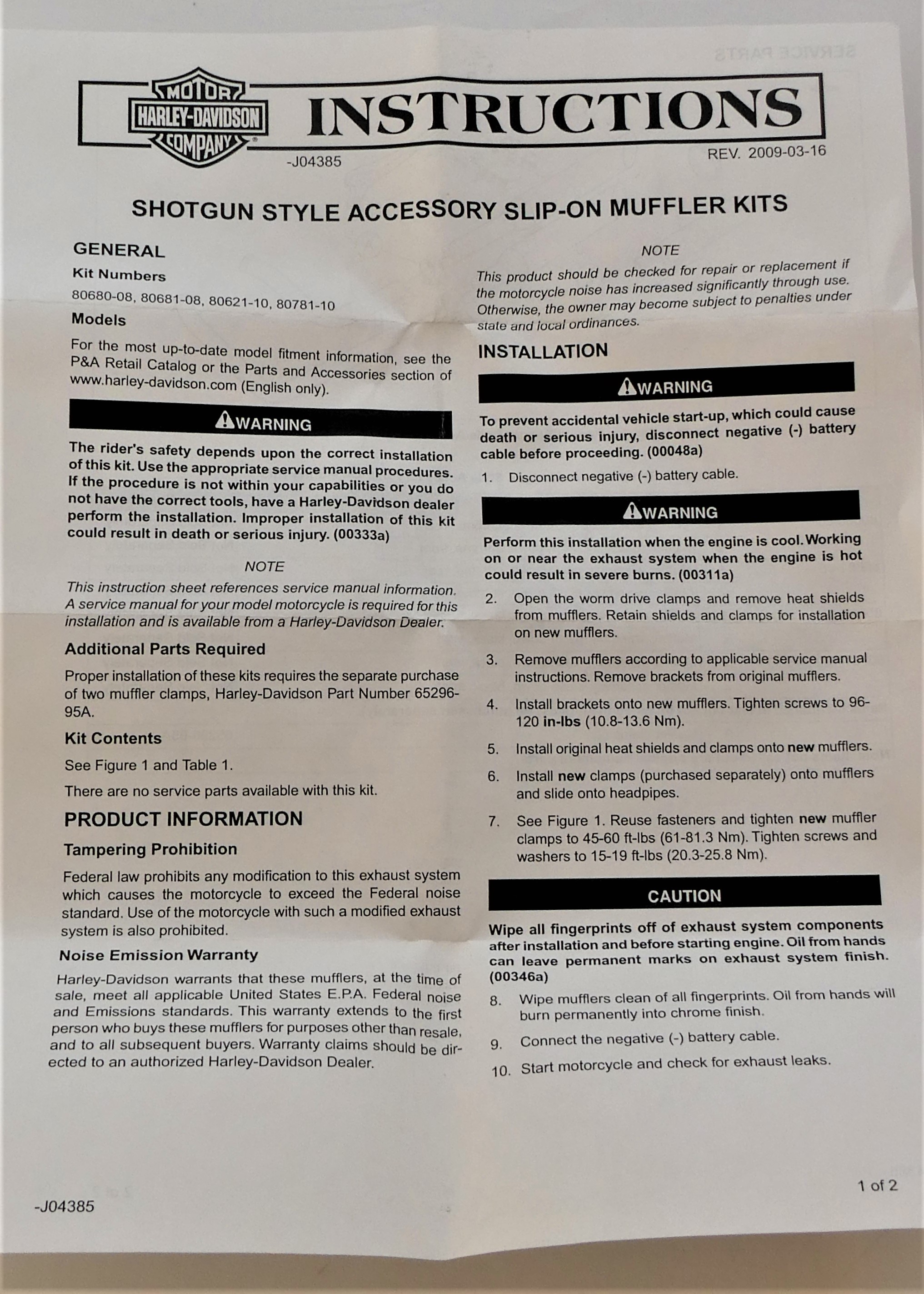 Für Anbringung braucht man die Auspuffklammern mit der Artikelnummer 65296-95A (QTY 2)